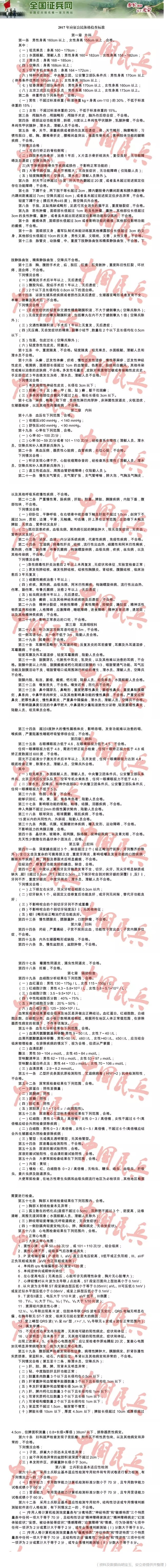 附:2017年应征公民体格检查标准