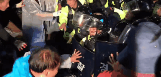 韩国警方出动大量警力,试图冲破民众封锁道路,现场爆发大规模冲突。目前伤亡情况不明。(央视记者 唐鑫)