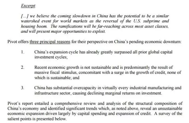 ▲马克·哈特2012年发表的看空中国经济的研究报告