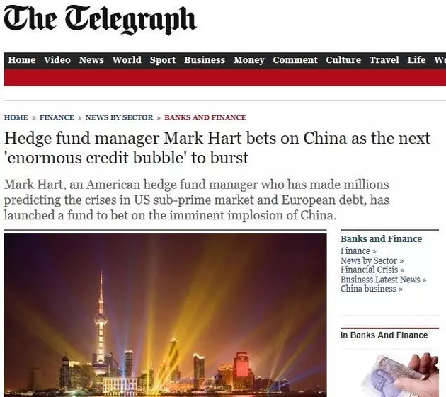 ▲2010年马克·哈特在每日电讯报发文看空中国经济