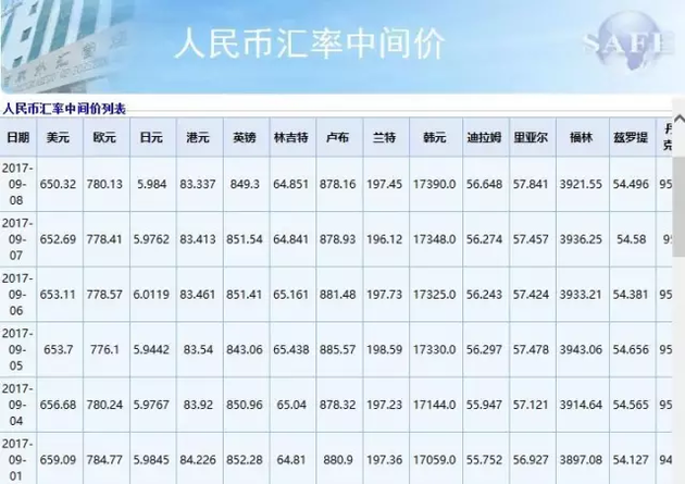 ▲人民币汇率中间价(图片来源:外汇管理局)