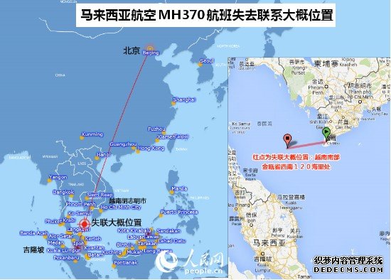 图片说明:MH370失联位置示意图