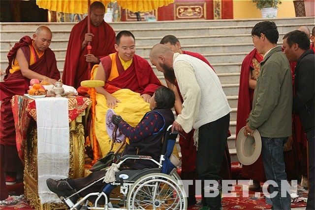 △班禅为坐在轮椅上的老阿妈摸顶赐福