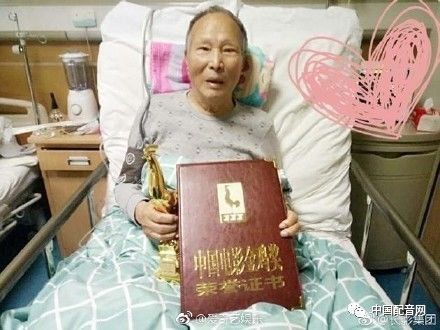 这是老爷子在病床是接受奖杯和获奖证书。
