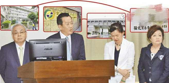 国民党“立委”卢秀燕昨在“立法院财委会”质询时,请“金管会主委”顾立雄(左二)与“经济部次长”王美花(右二)、“主计总处主计长”朱泽民(左)与台湾“输出入银行”总经理刘佩真(右)两对财经首长夫妻档上台备询,卢秀燕批抨这是“近亲繁殖”,未去家族化,不知回避。(图片来源:台湾《中时电子报》)