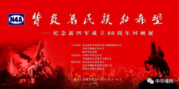 在中国中共党史学会、全国政协文史和学习委员会的支持下,由北京新四军暨华中抗日根据地研究会、中国文物保护基金会、新四军纪念馆在北京民族文化宫联合举办的《背负着民族的希望――纪念新四军成立80周年回顾展》(简称回顾展),将于2017年11月3-7日,在北京民族文化宫正式免费接待中外观众。
