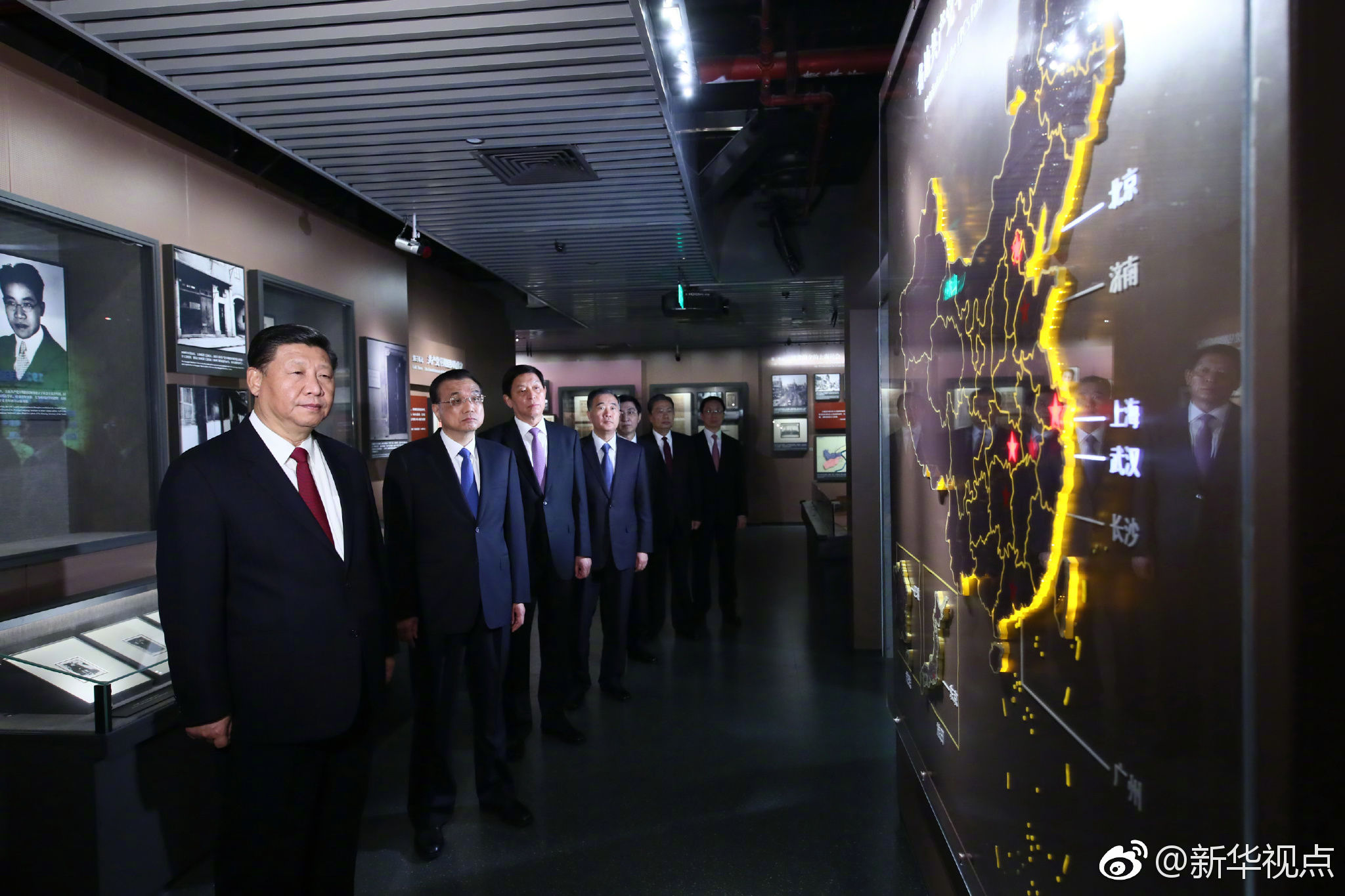 党的十九大闭幕仅一周,中共中央总书记、国家主席、中央军委主席习近平带领中共中央政治局常委李克强、栗战书、汪洋、王沪宁、赵乐际、韩正,于31日专程从北京前往上海和浙江嘉兴,瞻仰上海中共一大会址和浙江嘉兴南湖红船,回顾建党历史,重温入党誓词,宣示新一届党中央领导集体的坚定政治信念。习近平发表重要讲话强调,只有不忘初心、牢记使命、永远奋斗,才能让中国共产党永远年轻。只要全党全国各族人民团结一心、苦干实干,中华民族伟大复兴的巨轮就一定能够乘风破浪、胜利驶向光辉的彼岸。