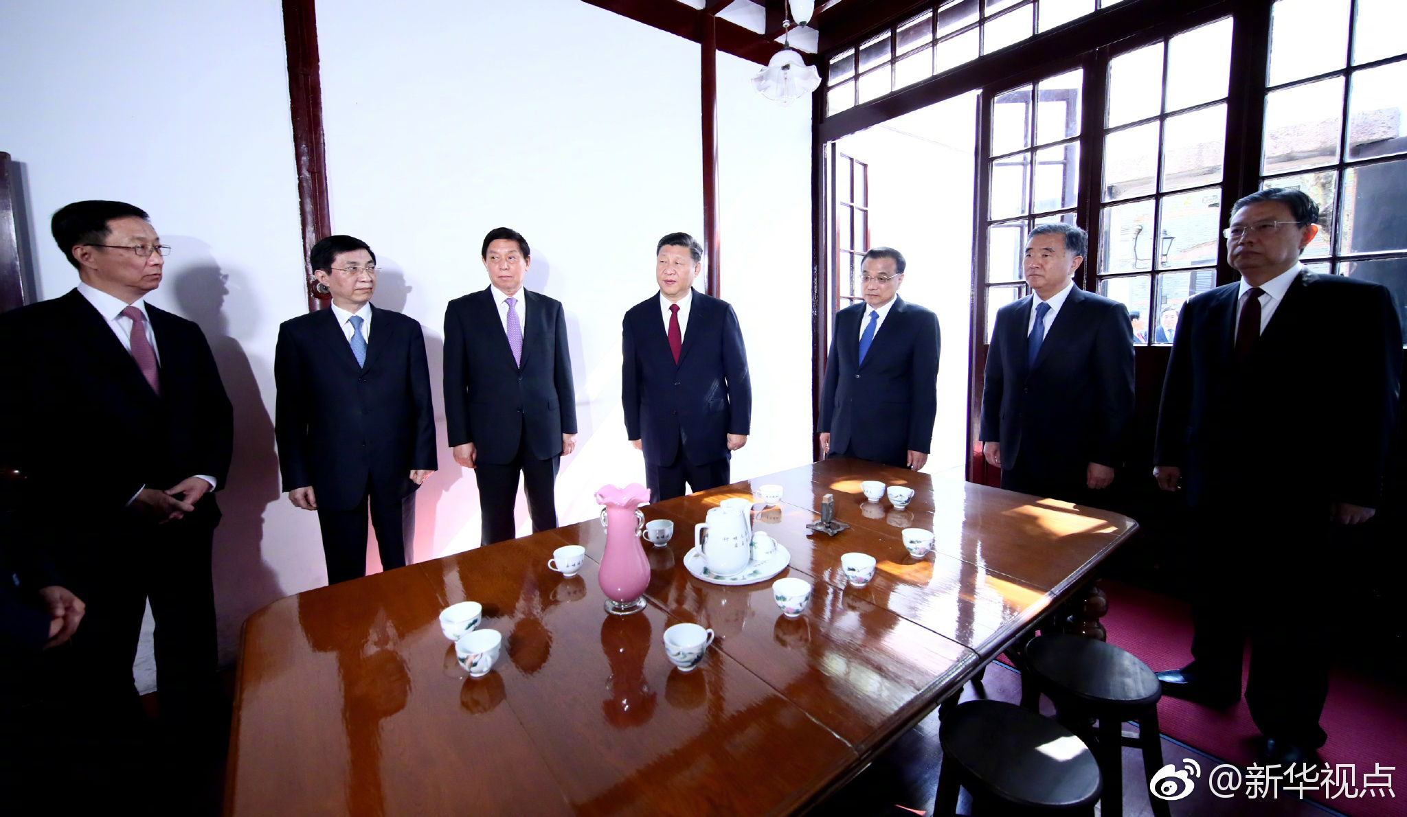 习近平瞻仰中共一大会址 带领常委重温入党誓词
