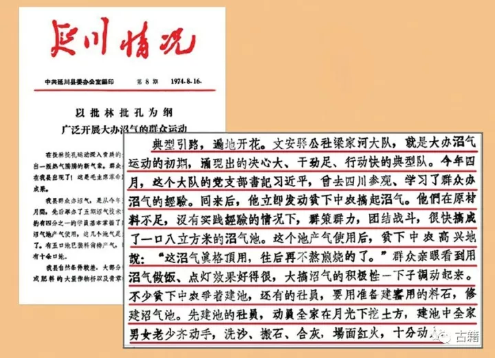 据我所知,习近平在延川插队时,还创造了一个更重要的第一。1975年9月20日,《延安报》(当时为《延安通讯》)整版发表了我撰写的长篇通讯“取火记” 。时任梁家河村大队党支部书记的习近平,在梁家河点燃陕西的第一个沼气池。一场始未及的沼气革命,在延川全县蓬勃展开,陕西省在这个县召开了全省沼气工作现场会。