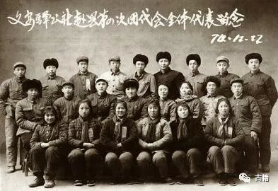 图为1974年12月,延川县召开第四次团代会。习近平(后排右四)与文安驿公社参加团代会的全体代表合影留念。