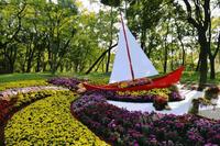 3大室外展区,10组室外景点,20多万盆菊花,500多个菊花品种,1000多个菊花造型,精品、名品大饱眼福,让你一次拍个够!本届菊花展设有造景菊艺术、造型菊艺术、品种菊艺术三大室外展区,总共10组室外景点。在“菊田物语”造型菊艺术展区,点缀各类观赏草,以菊花形式布置树木造型,与周边树林相呼应,主要景观为小松鼠、丹顶鹤、骏马等林间溪流边休憩的动物,周边布置各色菊花,一派自然野趣风光。景点中首次出现的3棵近4米高的“菊花树”堪称亮点,树干由枯掉老树桩的树皮“缝制”而成,树的内部中空,枯枝内部嵌入黄红色系菊花,古朴自然,韵味十足。