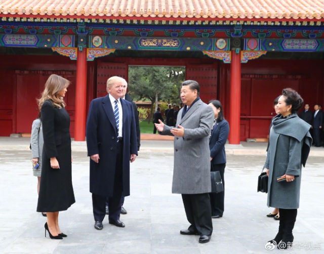 习近平夫妇陪同特朗普夫妇参观故宫博物院
