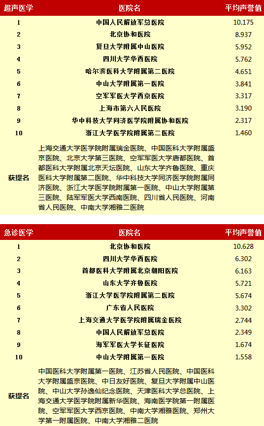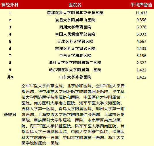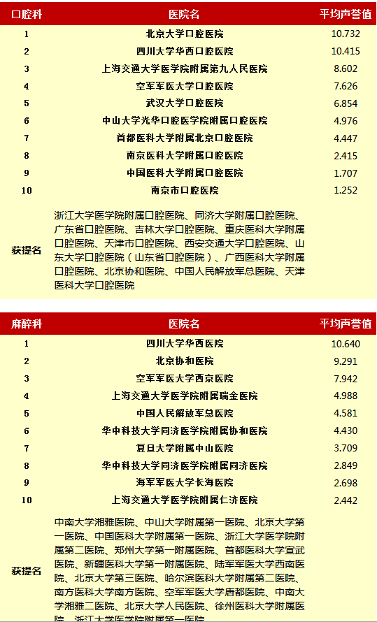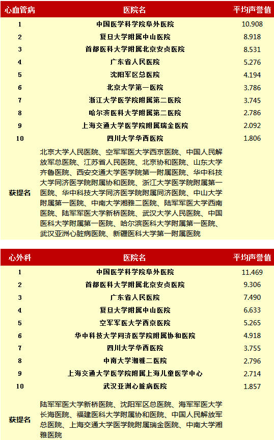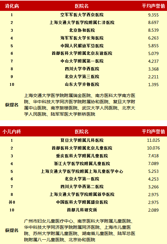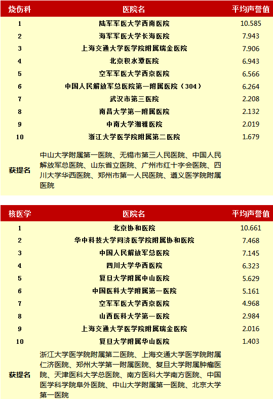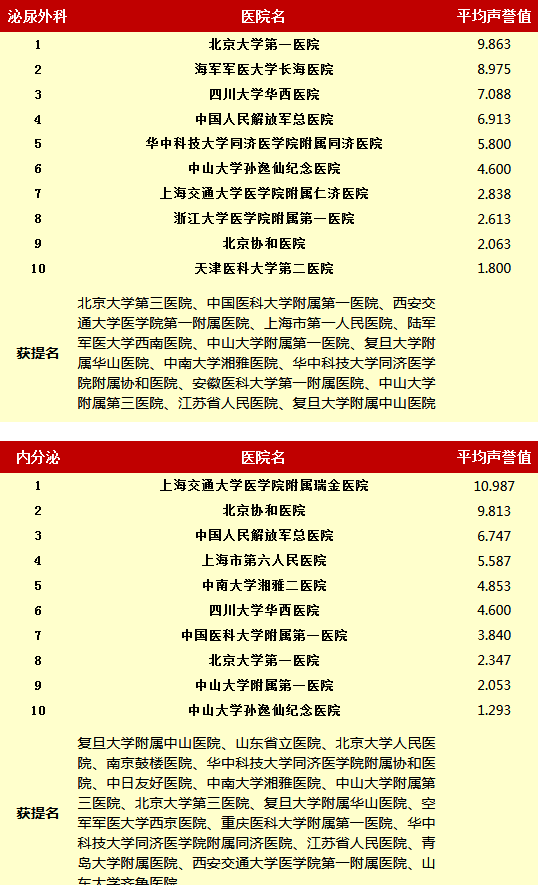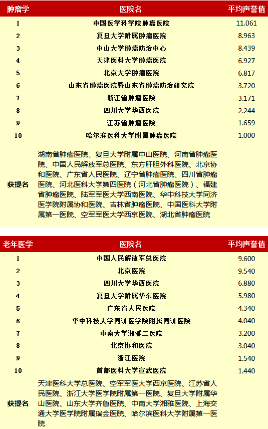 复旦大学医院管理研究所从2010年开始,每年推出上一年度的《中国医院专科声誉排行榜》和《中国医院排行榜》,其评审专家来自中华医学会和医师学会,涉及37个临床专科,向4173位专家发挂号信,收到有效回执2657份(每年有所变动)。