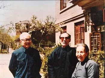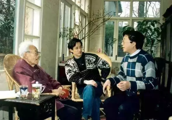 (上世纪八十年代,巴金,作者李辉,陈思和。)