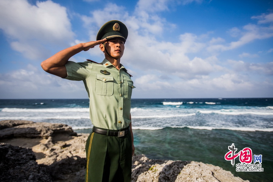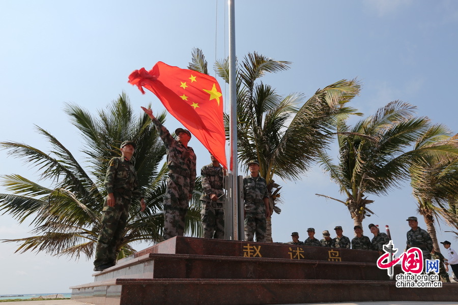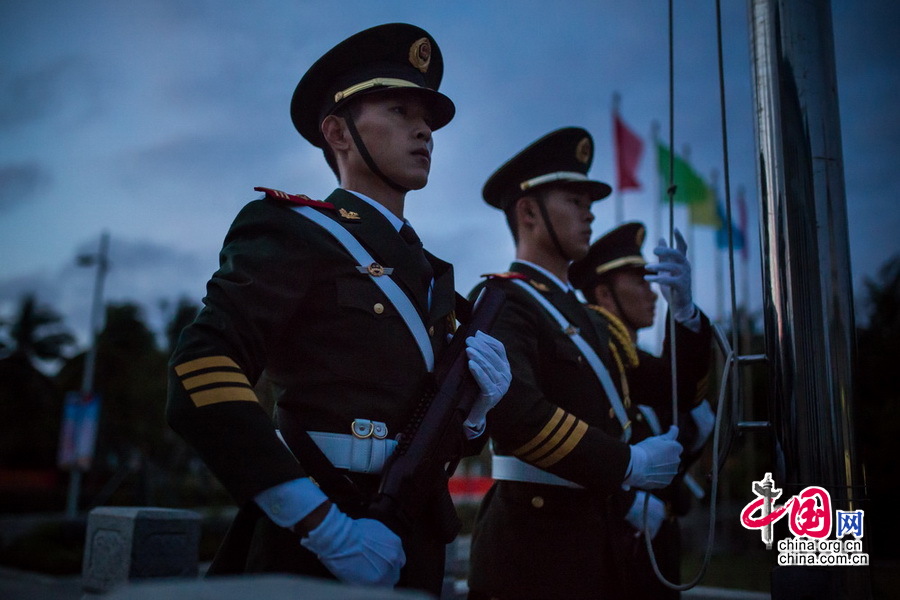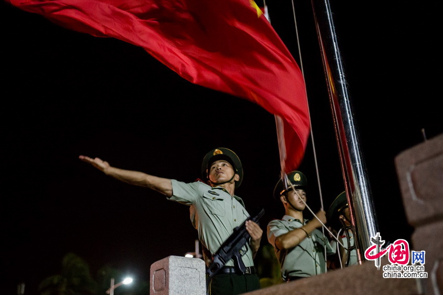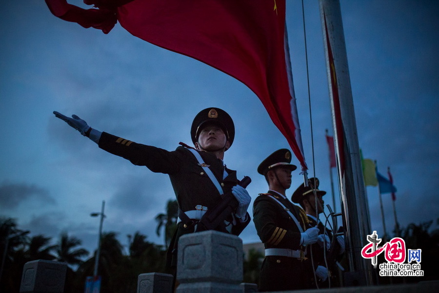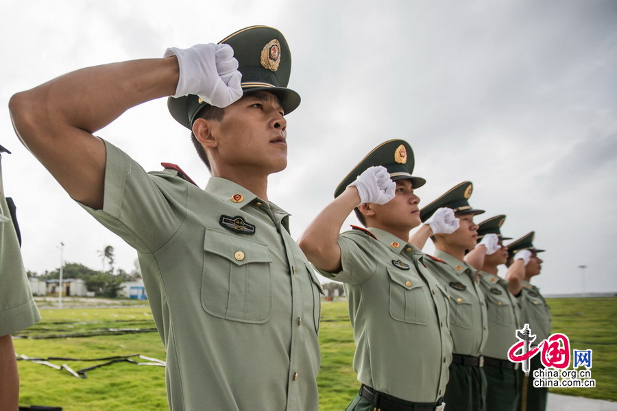 能够在自己的部队担任一名升旗手,对于每个当兵的战士来说都是至高无上的荣耀,能在武警驻地最“南极”的永兴岛上担任一名升旗手,那是更让人自豪的事情。凭借出众的军事业务能力和良好的军人形象,武警三沙中队一班班长中士赵凯龙从2012年第一批武警官兵驻岛时就被任命为升旗手,至今后一直担当此重任。在这里升起了三沙设市后的第一面五星红旗,是他担任升旗手最难忘的一次经历。中国网记者郑亮摄