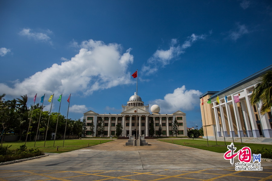 2017年10月1日,永兴岛三沙市政府门前举行升旗仪式,庆祝国庆,在这样的日子升旗,对祖国南段的三沙市有着尤为重要的意义。武警海南省总队驻三沙市中队供图