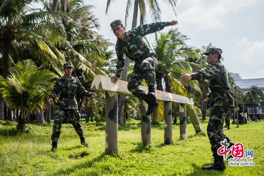 凭借着自己的努力,赵凯龙从一名“落后生”变成了中队的排头兵。他2013年代表中队参加总队组织的军事训练大比武,荣获18米抓绳上科目的第一名,年底获三等功一次。2014年超强台风威马逊正面袭击海南岛,在抢险救灾中表现突出,获得三等功一次,2015年,参加总队组织的军事训练尖子暨反恐特殊人才比武,被评为十大军事训练标兵,获得三等功一次。 中国网记者郑亮摄