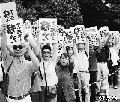 当地时间7月18日13时,超过5000名日本民众来到国会前,人人手持“不容许安倍政治”的标语,高声呼喊“坚决反对新安保法案”“要求安倍首相下台”(见图,本报记者刘军国摄)。这是反安倍全国统一行动的一部分。这一天,“不容许安倍政治”标语亮相日本大街小巷。日本共同社的最新调查显示,安倍内阁的不支持率首次超过半数,达到51.6%。