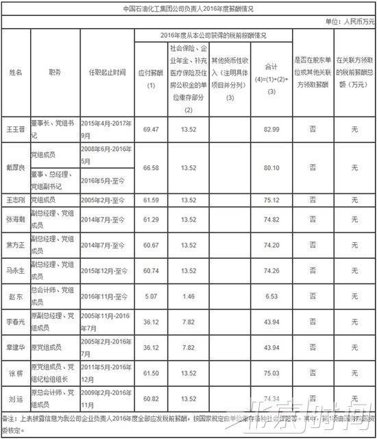 中石化集团企业负责人2016年度薪酬情况(图片来自公司官网,下同)