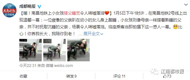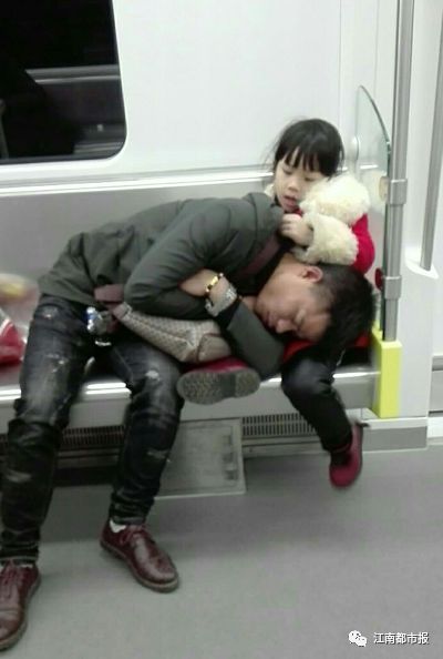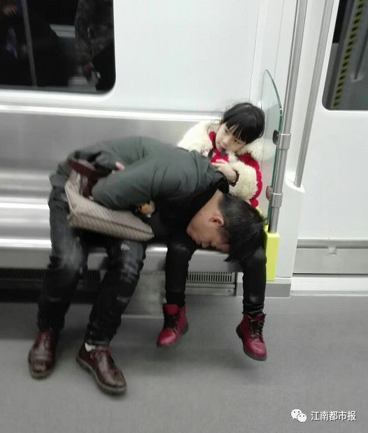 南昌地铁上小女孩搂父睡觉令人唏嘘落泪