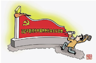 “主义譬如一面旗子,旗子立起了,大家才有所指望,才知所趋赴。我们的这面旗帜上写着马克思列宁主义、毛泽东思想、邓小平理论、‘三个代表’重要思想、科学发展观,现在又写上了习近平新时代中国特色社会主义思想”……