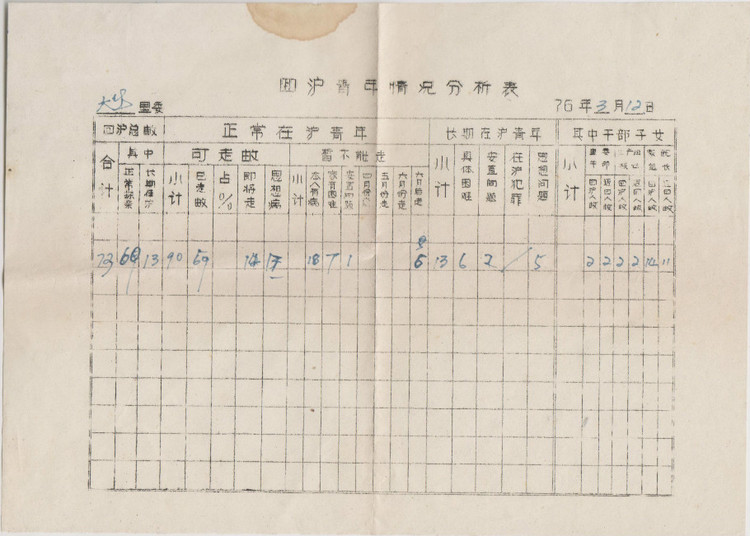 (2)正常在沪青年解读一张1976年的“回沪青年情况分析表”