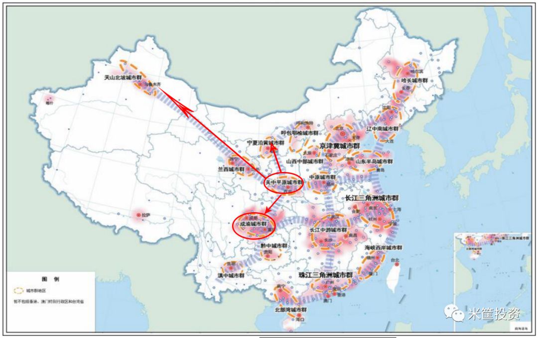 京津冀坐镇华北,长三角主导华东,珠三角辐射华南,中部及长江中游支撑中部,成渝则覆盖西南,哈长城市群栖息东北,西北却少了引领者,区域的不均衡必须填补这个空白。