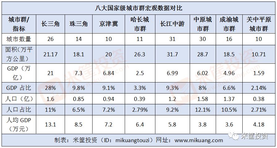 整体看,关中平原城市群是8个国家级城市群中,面积最小、人口最少、经济总量最少的城市群,与珠三角、长三角更是不在一个量级上。只有人均GDP,关中平原要高于中原城市群和成渝城市群。