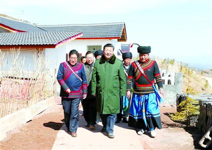 2月11日上午,习近平在凉山彝族自治州昭觉县解放乡火普村了解易地扶贫搬迁和彝家新寨建设情况。