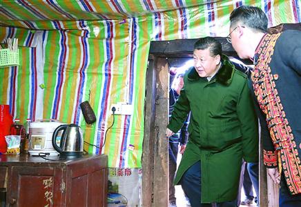 2月11日上午,习近平在凉山彝族自治州昭觉县三岔河乡三河村贫困户节列俄阿木家中看望。