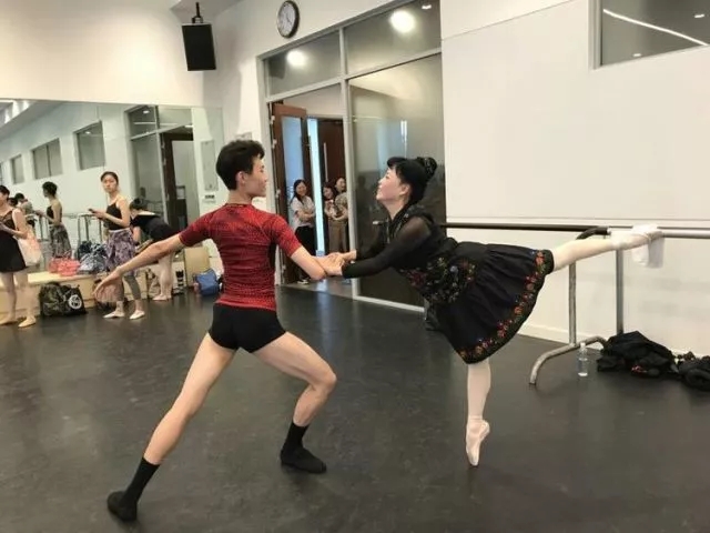 她在公开课上,与上海芭蕾舞团主要演员张文君共舞合影