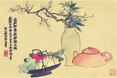 在清中后期的江南地区,“岁朝图”成为盛行于文人画的题材类型,画家们创作“岁朝图”时应景即兴,以清供之品入画,兼工带写并敷衍成诗
