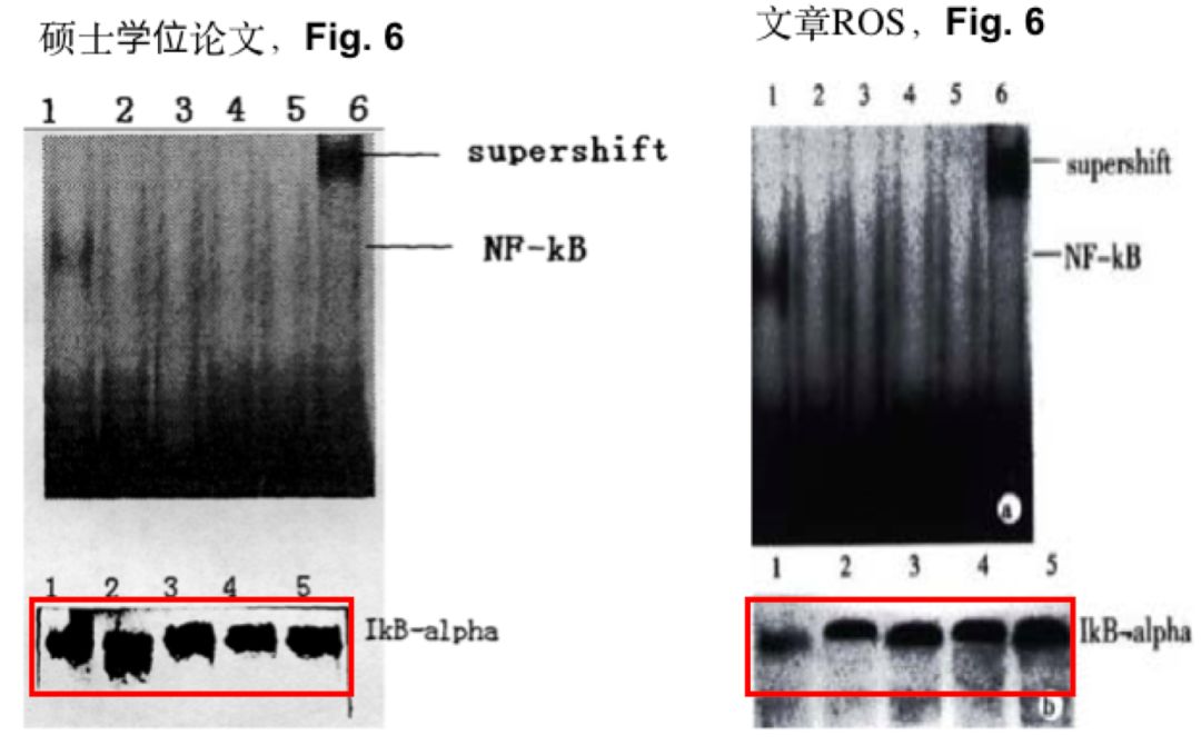W文存在借用9月收稿的RL95文和5月收稿的Cell Res文的问题,且W文和ROS文的大量图却继续用到了李红良其后的硕士学位论文中。