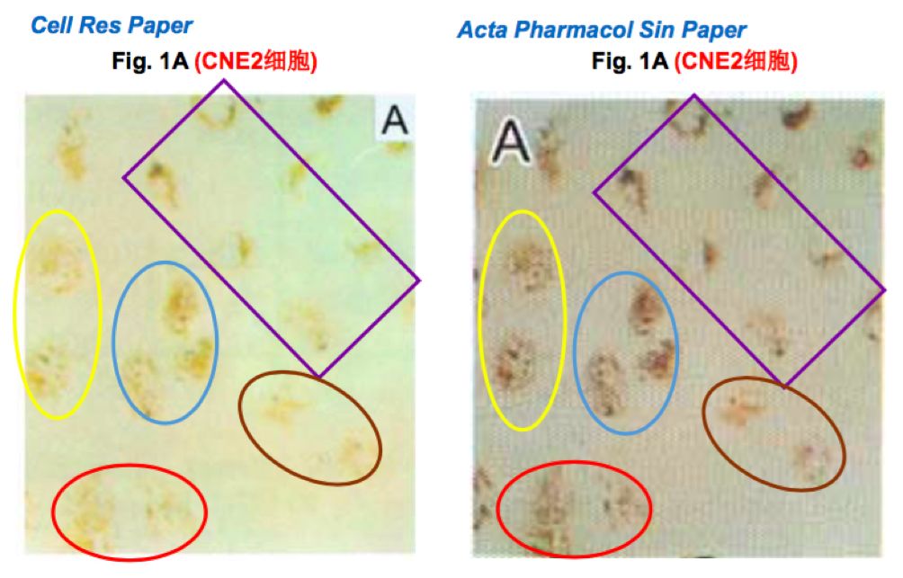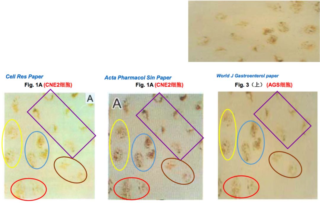 同样的图代表不同的实验,用在不同的文章,甚至这些图被人为的调整背景,剪切拼接和翻转,显然这些错误绝非“偶然,不小心”。