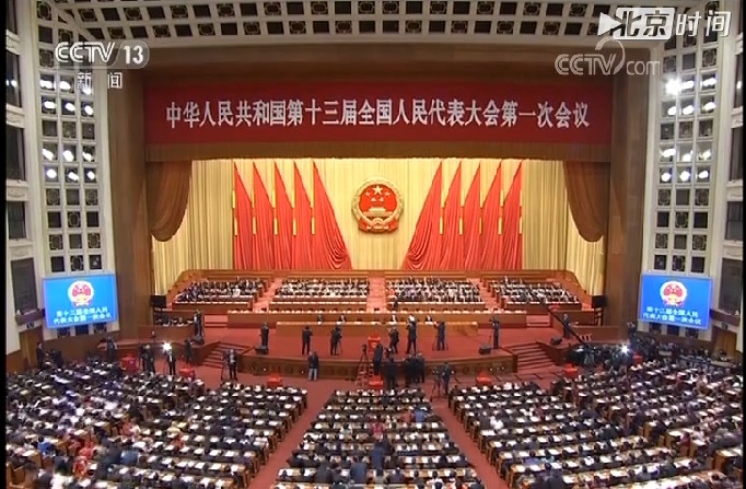 上午9时,十三届全国人大一次会议第五次全体会议在人民大会堂举行。