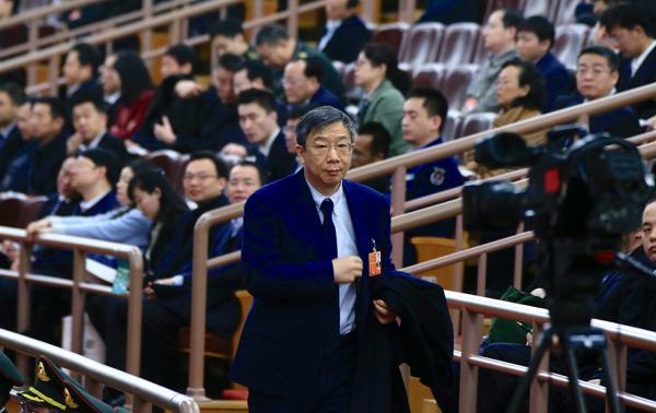 3月19日,易纲在十三届全国人大一次会议举行的第七次全体会议上。