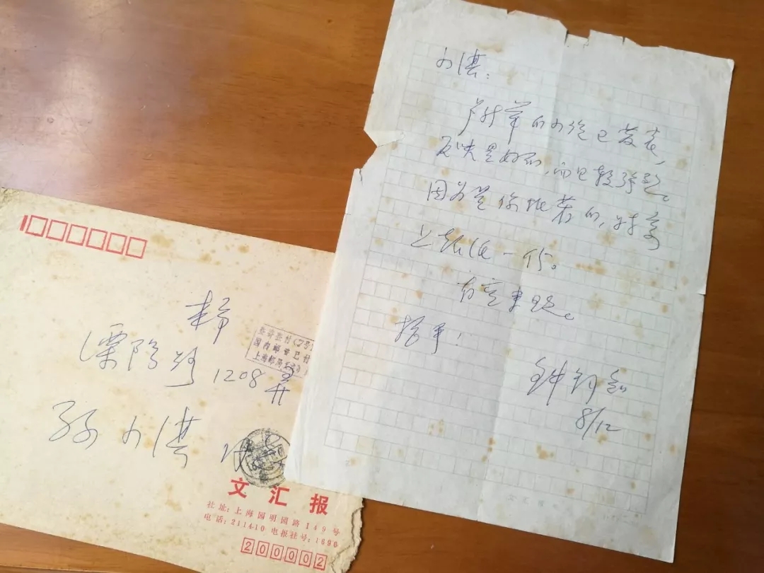 不久,文汇报开始了对《伤痕》不同意见的讨论,老钟对我说,你写一篇评论,就谈谈你的观点。我很兴奋,当天晚上就在家里乘凉的阳台上,以吃饭坐的方凳为桌,坐在小凳子上,在练习簿纸上写了那篇《<伤痕>出了“格”吗?》,寄给了老钟。