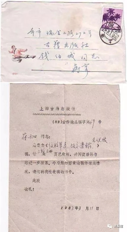 先父还向俞平伯先生、谢国楨先生等知名学者求撰序言,正是为《故交遗翰节存》出版作准备,以求早日完成先人的遗愿。并於二十世纪八十年代与上海古籍出版社联系,希望实现《故交遗翰节存》出版,可惜未能如愿。上海古籍出版社1983年三月十一日致先父的复函原件如下: