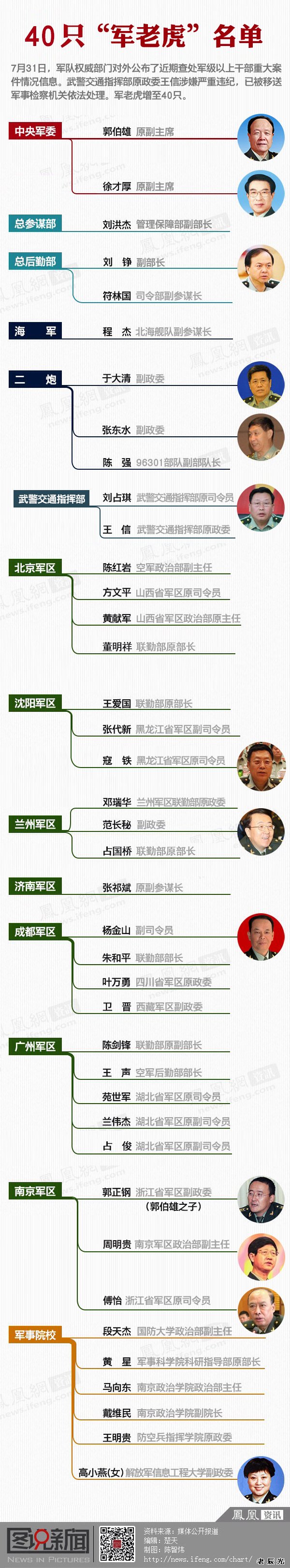 中国军网北京7月31日电 军队权威部门今天对外公布了近期查处军级以上干部重大案件情况信息。