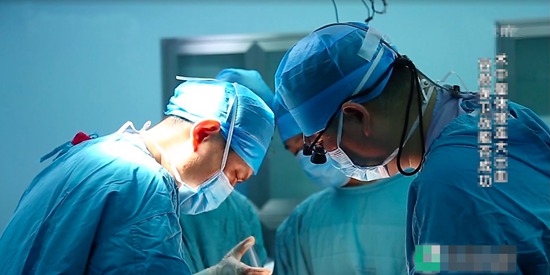 刘静明(左)在手术中图片由北京电视台“生命缘”节目组提供