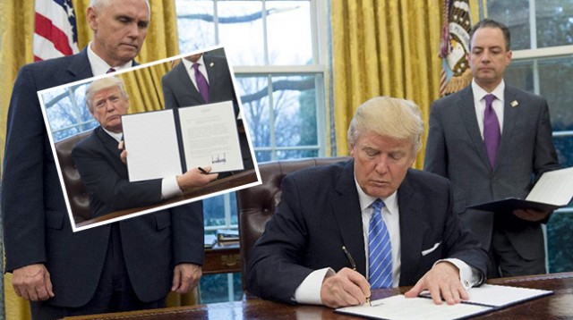 去年1月23日,特朗普签署行政命令,正式宣布美国退出TPP。当时他说,退出TPP对于美国工人来说是件“大好事”。白宫发言人斯派塞当天在例行新闻发布会上表示,签署这一行政命令标志着美国贸易政策进入新的时期。他说,特朗普政府未来将与美国盟友和其他国家发掘双边贸易机会。