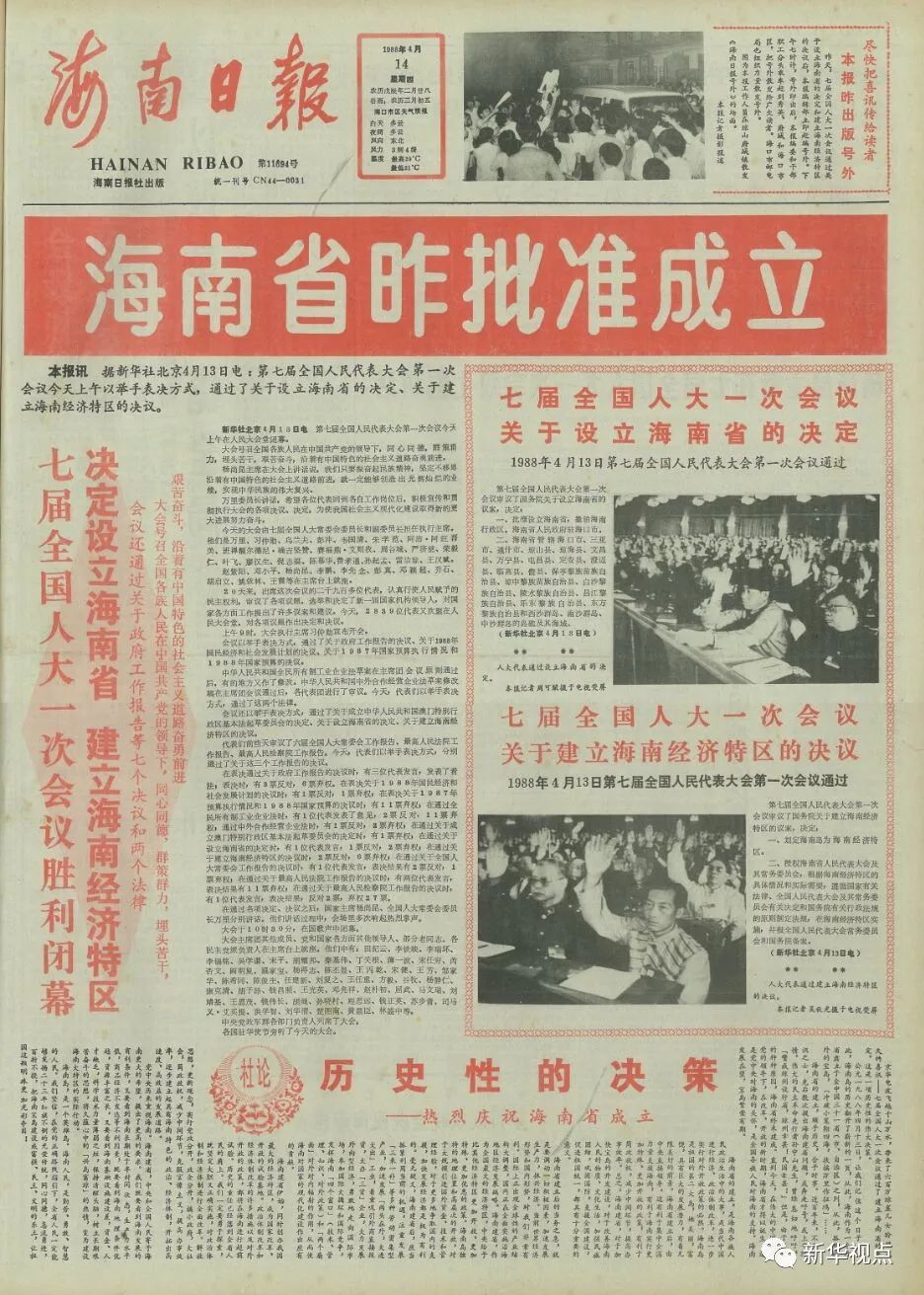 30年前,1988年4月13日,习仲勋作为大会执行主席,主持了七届全国人大一次会议闭幕会。这次大会决定设立海南省,建立海南经济特区。