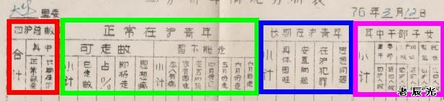 浏览那张表格,回味那张表格,真是感慨万万千!当时为了管控知青,从基层收集数据,了解动态,花费了多少心思啊。如果说,当年三百亿安置费只是国家的直接投入,那么,为了“巩固和发展新生事物”, 层层级级又耗费了多少人力物力财力呢?恐怕永远无法统计了。如此浩大的的投入,于国于民又产出了什么?现在,似乎无人关注处于知青侧面的其他方面的历史痕迹。实际上,它们对研究和评价那场“知青运动”是不可或缺的。
