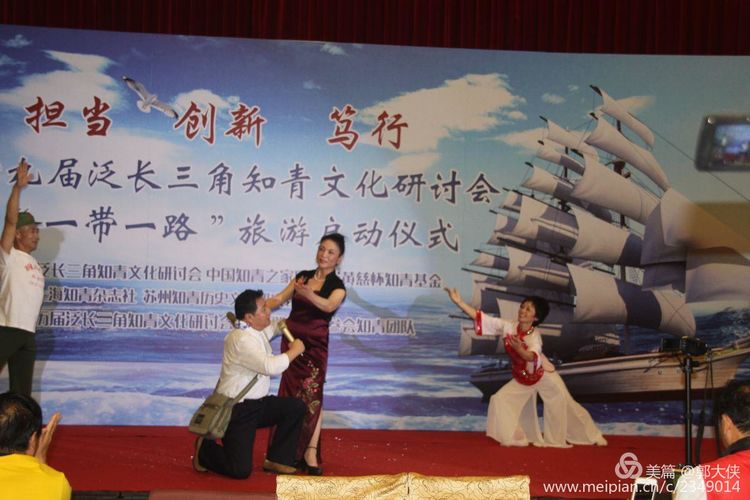 第二天,5月20日上午,知青们在蒙蒙细雨中,踏歌而行,来到了郑和公园,六百多年前,明朝郑和带领团队七次下西洋,向世界传播先进的中华文明,这是历史上伟大的壮举,太仓是首航起锚之地,知青们踏上大型宝船,横幅飘舞,会旗猎猎,豪情满怀,高歌“敢问路在何方?”你挑着担,我牵着马;翻山涉水两肩霜花。风云雷电任叱咤,一路豪歌向天涯,向天涯。啦啦啦啦啦啦啦啦!一番番春秋冬夏,一场场酸甜苦辣;敢问路在何方?路在脚下……”