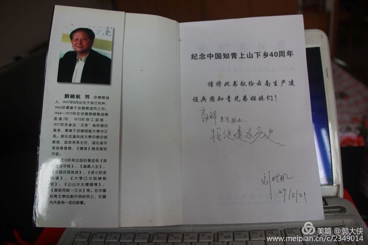 他说:文革结束后,恢复高考,成为光荣的77届大学生,高考1977,这是历史的选择!毕业以后,成为大学教授,旅游学院院长,作家,先后写了16本书,一半是写知青题材,其中由香港中国文化艺术出版的《我们要回家》是我成名代表作,2009年出版发行五千册,老早就销售一空了现在我没有停下写作,正在写《开荒的荒岗》这本书名在1971年就定下来了,我要将我们这一代人的命运抗争写出来。