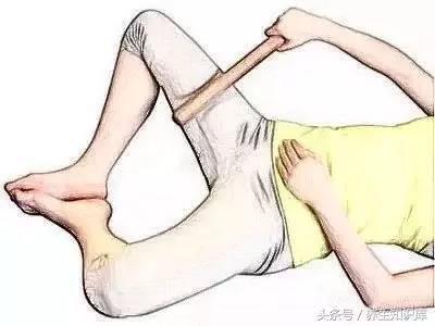 晚睡前,准备一根40厘米左右的擀面杖,然后自然地仰躺于床上,两条腿稍稍蜷起,使两脚脚心相对,这时大腿的内侧自然摆于正面。