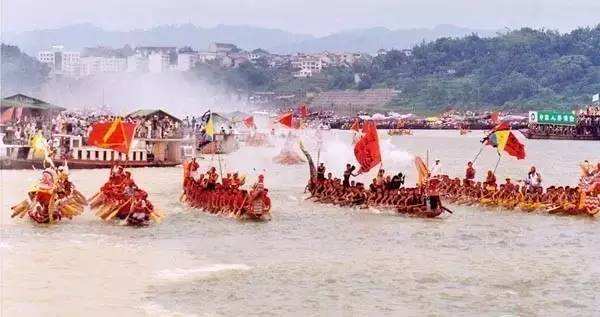端午日,当地妇女、小孩子,莫不穿了新衣,额角上用雄黄蘸酒画了个王字。任何人家到了这天必可以吃鱼吃肉。大约上午11点钟左右,全茶峒人就吃了午饭。把饭吃过后,在城里住家的,莫不倒锁了门,全家出城到河边看划船。河街有熟人的,可到河街吊脚楼门口边看,不然就站在税关门口与各个码头上看。河中龙船以长潭某处作起点,税关前作终点,作比赛竞争。因为这一天军官、税官以及当地有身份的人,莫不在税关前看热闹。划船的事各人在数天以前就早有了准备,分组分帮,各自选出了若干身体结实、手脚伶俐的小伙子,在潭中练习进退。