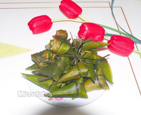 母亲自家裹的粽子,看上去和店里买的粽子没什么两样,可剥开那绿绿的油光发亮的粽叶壳,一粒粒烂熟而晶莹剔透的糯米,包裹着大块散发着扑鼻香气的五花肉,在碗里的粽子有棱有角。糯米和肉都同时闪耀着酱油、糖的光泽,粽叶的香气、糯米的香气、肉的香气早已让人垂涎欲滴了。一口吃在嘴里,咸中带着肉的鲜味,甜中夹带着糯米的芳香。