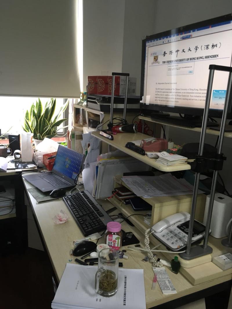 蒲慕明办公室上摆放着两台电脑。黄海华摄