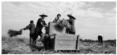 从最初的斛桶到脚踩的打稻机,好长时间我都是专职捋稻铺,裸着身子,只穿个短裤衩,弯着腰把一把把稻谷从泥田里抱起来,深一脚浅一脚踩在泥田里,来来回回,将稻铺递给大人。